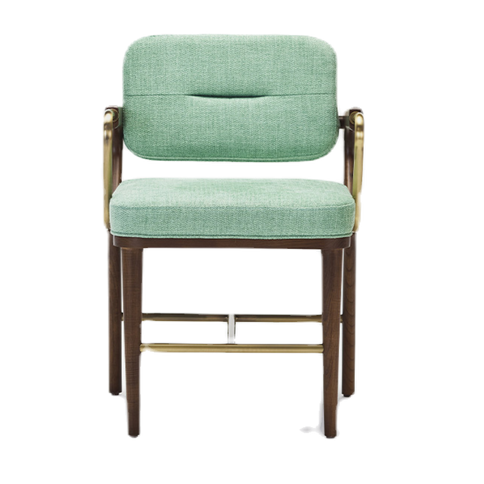 Seat & Back: Upholstered seat and back with Metal Arm Details